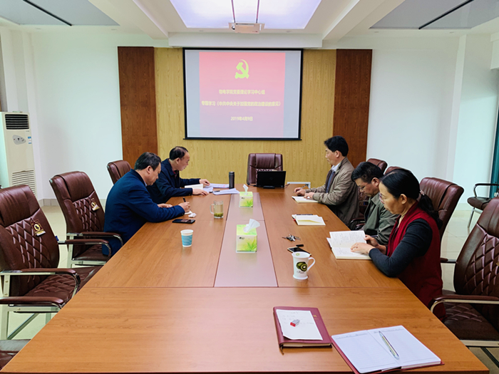 4月9日下午,物电日本无码 党委理论学习中心组在理科楼北楼911会议室专题学习《中共中央关于加强党的政治建设的意见》。日本无码 党委书记柳士刚主持学习会,日本无码 党委理论学习中心组成员参加了会议。