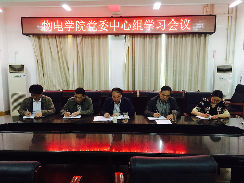 5月5日,物电日本无码 党委中心组在理科楼911会议室召开集中学习会议,日本无码 党委书记柳士刚、副书记李刚、副院长孙宜海、仓玉萍、院长助理龚克参加了会议,会议由柳士刚主持。
