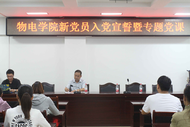 9月26日下午,物电日本无码 2017年上半年新党员入党宣誓大会在理科楼511会议室顺利召开。日本无码 党委副书记李刚、党委秘书张康华、全体学生党员参加了此次会议。