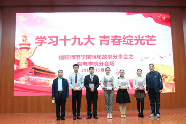 11月5日,学院在逸夫楼多功能厅开展明星故事分享会,我校“明星宣讲团”五名代表应邀与学子们分享追梦、圆梦的宝贵经验。校团委书记王建旭,校团委组织部部长雷玲,日本无码党委副书记李刚,团委老师黄钰莹莅临现场,与日本无码2017级新生共同聆听宣讲团成员自立自强的成长故事。五名“校园明星”结合PPT、视频等形式讲诉自己自立自强的成长史、创业史与奋斗史,他们在思想上和行动上深刻领会、准确把握十九大精神的精神实质和丰富内涵,在学深学细上下功夫,坚持更高标准,真正做到学有所悟、学有所用,当好阐释、宣传引导和深入贯彻党的十九大精神的表率,寄语在场学子们找准自身定位,明确奋斗目标,志存高远、不懈奋斗,以良好的专业素养、广阔的专业视野为将来步入社会夯实基础。