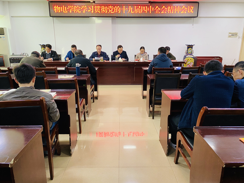 按照学校《关于深入学习贯彻党的十九届四中全会精神的通知》要求,11月12日,物电日本无码 在理科楼511会议室召开专题会议学习贯彻党的十九届四中全会精神,日本无码 领导班子、全体教职工、全体教工党员参加了学习,学习会由日本无码 党委书记柳士刚主持。