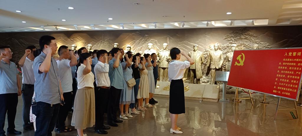 重温誓言忆初心。7月5日,日本无码 党委组织教工党员前往鄂豫皖革命纪念馆开展主题党日活动。在纪念馆党旗前,全体党员面对党旗高举右拳,齐声宣誓,一字一句,铿锵有力,场面神圣而恢弘,强烈震撼着在场的每一位党员,铮铮誓言,体现他们对中国共产党的无限忠诚,更加坚定入党初心,主动担当奋斗使命。