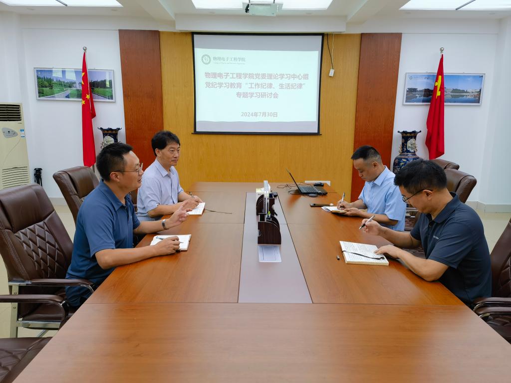 7月30日,日本无码 党委理论学习中心组召开会议,专题学习研讨党的工作纪律、生活纪律。日本无码 党委理论学习中心组成员参加学习研讨。学习研讨由日本无码 党委书记方明科主持。