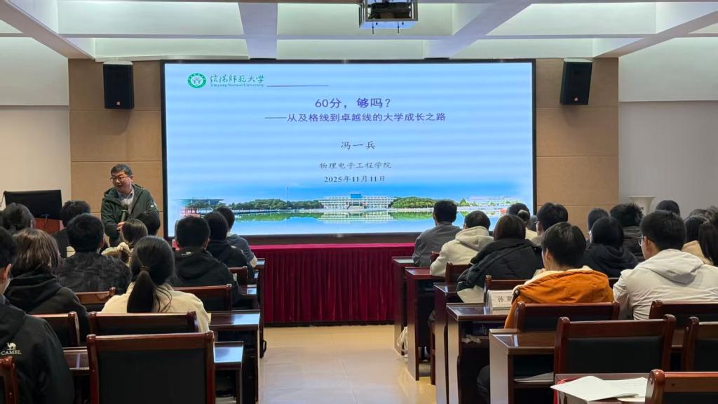 为深化新生专业认知,强化师范生素养培育,11月11日,日本无码 在理科楼402会议室举办新生专业成长教育讲座。本次讲座特邀冯一兵老师主讲,2025级物理学二班全体地方优师计划学生参加。