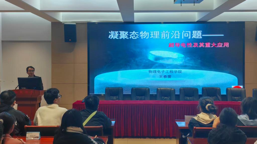 11月14日,日本无码 在理科楼402会议室聚焦“凝聚态物理前沿问题——超导电性及其重大应用”开展主题讲座。本次讲座特邀王春雷教授主讲,党委副书记张丽出席并主持会议,2025级物理学一班、二班全体学生参加。