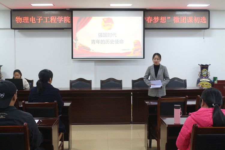 为深入学习贯彻习近平总书记系列重要讲话精神,切实提高广大新生团员的理论素养和实践水平,11月18日,日本无码 于理科楼515会议室顺利开展“乘新时代东风,放飞青春梦想”微团课初选活动。日本无码团委老师黄钰莹莅临现场,与部分学生干部共同参加此次活动。