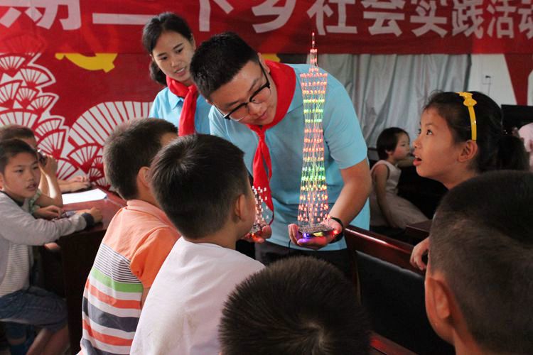 活动邀请万营村当地三十余名小学生参与其中,活动类型包括主题宣讲、义务授课、手抄报、特色展览,形式涵盖诗词欣赏、游戏互动、语言解释、动手操作等类型,内容别出心裁、新颖有趣。在主题宣讲活动中,小朋友们根据志愿者故事内容的讲述及相关图片的展示猜出成语名称,猜测正确的小朋友将会获赠水彩笔、书本等精美礼品,其在积极热情的回答中收获知识与欢乐。在特色展览活动中,志愿者们利用LED灯作为材料成功制作微型广州塔、长方体等展览作品,制作精良,外形美观。通电后模型有规律的闪烁,形成各种形状,LED灯忽明忽暗,忽上忽下的光亮走动让小朋友眼前一亮。活动期间,志愿者为小朋友们检查假期作业,并挑选其不会的内容进行一对一耐心讲解。历时两天的活动结束后,小朋友们为大家分享自己的收获与感悟,他们表示将从我做起,从现在做起努力学习,讲普通话做文明人,其天真烂漫的话语、真挚无暇的感谢给予志愿者温馨与感动。