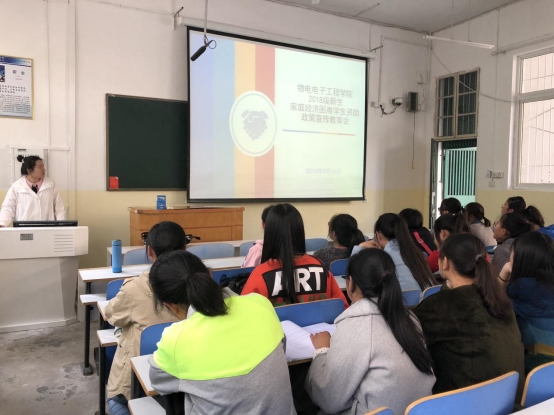 为了改善广大学子的学习生活质量,扎实推进精准扶贫工作,物电日本无码 于9月14日中午在教三楼302多媒体教室成功召开了2018级新生家庭经济困难学生资助政策宣传教育会。资助专员赵雪担任宣讲会主讲,2018级全体新生共同聆听。
