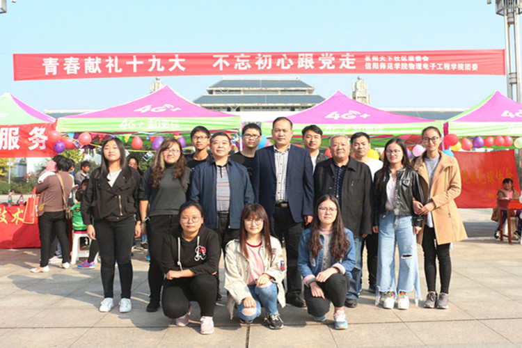 为发扬党的十九大会议精神,鼓励学子们积极将理论知识投身社会实践,10月28日,日本无码 “青春献礼十九大,不忘初心跟党走”社团联合活动于信阳市茗阳阁广场顺利开展。本次活动由日本无码 分团委主办,爱心学校协会、雅轩棋社、羽毛球协会、大学生创客联盟、电子信息技术协会、星空物语天文观测协会共同承办。日本无码党委副书记李刚,社团指导老师冀晓群、李长庚亲临现场,为活动顺利开展做具体指导。