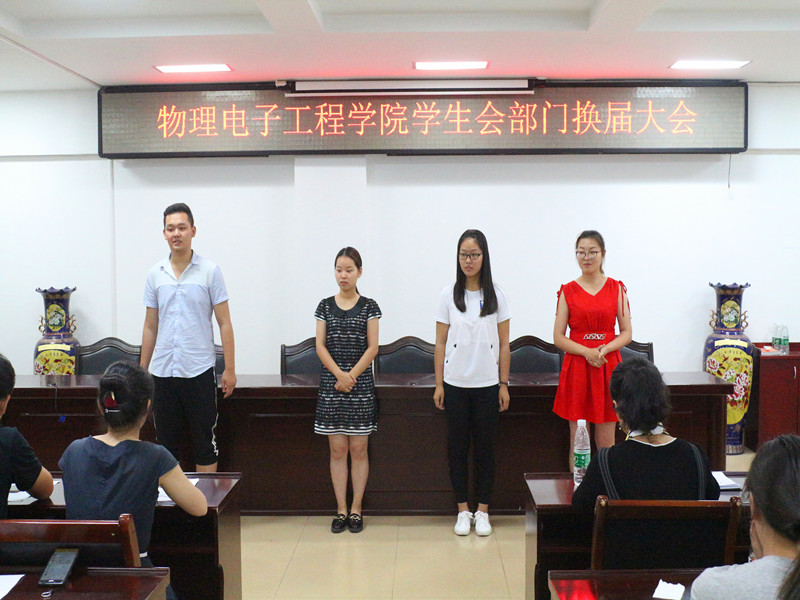 6月4日下午,物电日本无码 学生会部门换届大会于理科楼511会议室顺利进行,日本无码党委秘书张康华,团委老师杨勇、黄钰莹等领导老师莅临现场,与学生会主席团成员及各部门部长、副部长一同参加会议并担任评委。