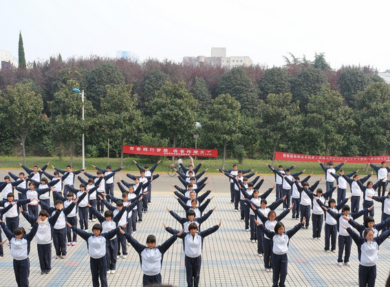 的传统强项,连续三年都以优异的成绩拿到了学校广播操大赛的一等奖,他希望2013级新生要向往届学生学习,刻苦训练、再创辉煌。比赛正式开始,2013级四个班按顺序依次出场。伴随着轻松欢快的旋律,同学们精神饱满,着装统一,动作整齐,尽显青春年华的绚丽多彩和生机活力,赢得了在座评委和现场观众的热烈掌声。比赛中,同学们迈出自信、喊亮青春,经过激烈角逐,电子科学与技术班以饱满的精神和整齐划一的动作夺得第一名。最后,张彦飞和刘华超为获奖班级颁奖。