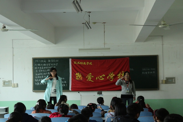 活动伊始,小朋友们由爱心老师带领,陆续进入教室。在社团负责人沈燕红的有序组织下,爱心老师开始对小学生们进行一对一辅导。爱心老师们认真地解答了孩子们提出的问题,并对他们作业中存在的错误进行了纠正。在爱心老师的帮助下,孩子们很快完成了自己的作业。随后,爱心老师们开始带领大家学习简单的手语。孩子们均表现出了浓厚的兴趣,伸出小手,跟随爱心老师耐心地重复着每一个动作。手语教学结束后,颇受孩子们欢迎的“第二课堂”环节就在孩子们的欢呼声中开始了。首先,爱心老师们带领孩子们一起学习歌曲《蜗牛与黄鹂鸟》。优美的旋律伴着孩子们甜美的歌声,飘荡在师生之间,飘进了每一个人的心坎里。在随后的知识竞答环节中,孩子们表现的更加踊跃,争先恐后地抢答爱心老师们提出的问题。此外,对于表现积极的小朋友,爱心老师均以小红星作为奖励。和着一支歌曲,此次爱心辅导活动圆满结束。