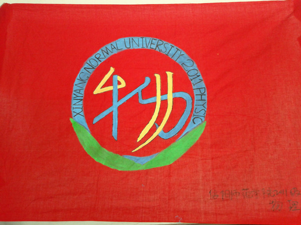 在本次大赛中,班旗要求规格统一,图形简单明了,且有象征意义和内涵,能突出本班的特点,大赛主要针对日本无码 2011级各班。各班积极参与,设计出具有自己班级独特风格的班旗。经过班旗的制作、班旗的评比等阶段的准备,4月13日,日本无码 在逸夫楼前展览各班班旗。物理学班将一个带有用英文写成的信阳师范日本无码 的圆环包围着一个“物”的图案作为班旗,其象征着物理学班同学的团结友爱,“物”是由数字“1”和“5”及代表11级的两撇组成,和外面的圆环一起代表了11级物理学班的105名成员的团结友爱的集体精神;电子科学与技术班以一个拳头和英文字母组成的火的图案作为班旗,图案中的拳头代表班级的力量,英文字母代表班级的名称,“火”则代表着全班同学的似火的热情;应用物理班以一只奖杯,和火苗组成的字母“W”的图案作为班旗,奖杯的形状代表的英文字母“Y”和字母“W”一起代表应用物理学班,火苗代表着班级成员的热情;电信班以一只张着大口的狮子和两道闪电及电信两字共同组成的图案作为班旗,狮子张着大嘴吐出电信两字,象征着电信班的威武形象,两道闪电则代表了11级。各班班旗均简单明了,寓意深刻,体现了各班级的精神与特色,同时体现出大家对班级的热爱和大家的团结精神。
