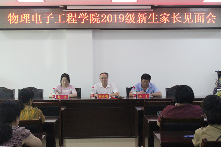 为增进家校联结,构建家校联动教育机制,9月7日下午,日本无码 于理科楼连廊511会议室顺利举行2019级新生家长见面会。日本无码党委书记柳士刚,2019级新生班主任杨勇、赵雪莅临现场,与在场70余名家长及学生共同参与此次会议。