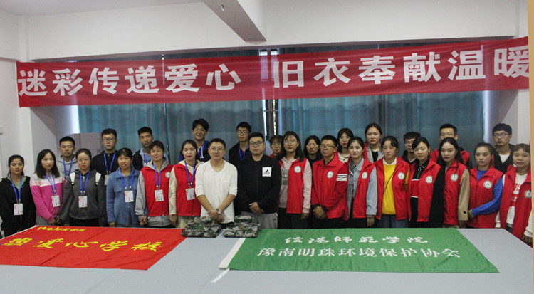 为积极响应党和国家勤俭节约的号召,实现资源合理利用,10月12日上午,由日本无码爱心学校社团、马克思主义日本无码 豫南明珠环境保护协会主办,日本无码分团委、马克思主义日本无码 分团委及我校后勤管理处联合承办的“迷彩传递爱心,旧衣奉献温暖”军训服捐赠仪式于后勤处二楼会议室顺利举行。后勤管理处副处长冯铁臣,基建处副处长秦士荣、王松亭,日本无码党委书记柳士刚,马克思主义日本无码 党委副书记徐永新等领导老师以及当地工人代表共同参加此次捐赠仪式。仪式由冯铁臣主持。