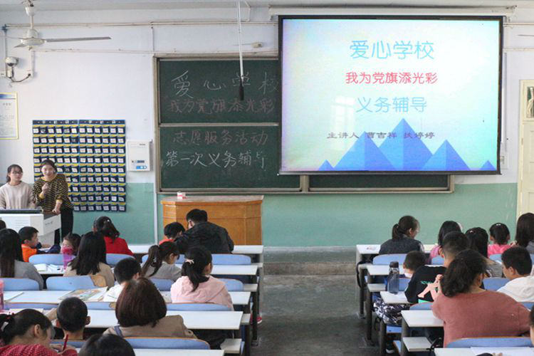 此次活动以“我为党旗添光彩”为主题,辅导对象主要为飨堂小学的学生们。爱心老师带领学生入座后,对其进行一对一的作业辅导。小朋友们勤学好问,积极向爱心老师请教问题,爱心老师用生动形象的语言帮助小朋友们分析理解问题,有效巩固他们的学习基础,提高其学习效率。此外,为丰富学生知识,滋润学生心灵,爱心学校教学部部长曹吉祥、副部长扶婷婷为小朋友精心打造以“我们都是好孩子”为主题的第二课堂。扶婷婷提出问题“好孩子应该具有什么品质”,引导小朋友深入思考,并通过一个个小故事鼓舞他们争做诚实守信、孝敬父母,善良有爱心的美德少年。曹吉祥以“养成好习惯”为主题,让小朋友结合自己的学习经历和校园生活,畅谈自己的好习惯和坏习惯并倡导他们及时纠正。期间,爱心老师鼓励学生们勇于举手发言、上台展示自我,其认真负责、细致耐心的态度获得学生和家长们的一致好评,现场气氛融洽和谐。