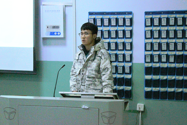 活动开始,刘栋通过放映征兵宣传片展现刻苦训练、昂首阔步、气宇轩昂的士兵形象,指出大学生应征入伍是推动国家军队建设进步与发展的重要举措,是贯彻落实国防教育理念的有效方针,新时代青年要积极响应党和国家的号召,提高自身综合素质,自愿参与到国防军队建设中。他借助精心准备的视频、PPT图片针对“大学生应征入伍需要知道的事”这一话题从“征兵的相关规定”“征兵需要的条件”“男女征兵流程”“当兵的十大好处”四个方面进行详细阐述,介绍征兵相关的法律文件,加深学子对大学生参军入伍的理解。刘栋指明,为鼓励大学生积极参军入伍,国家批准义务兵征集调整为一年两次征兵两次退役。他强调,征兵流程大致可以划分为登记报名、现场确认、预征管理、体检政审四个基本步骤,参军入伍者需满足年龄适中、身体状况健康达标、具备良好端正的政治态度等要求。刘栋结合政治热点和时代军人事例展示铮铮铁骨的士兵形象,并围绕学习、工作、生活等方面讲述大学生参军入伍的重要意义,进一步呼吁学子们踊跃参军。他表示,征兵工作是建设巩固国防和强大军队的希望工程,是军队现代化建设的基础性工程,大学生参军入伍不仅可以积累一份丰富的人生经历,造就坚韧不拔、吃苦耐劳、自立自强的优良品质,还可以享受国家政府提供就业机会,补助学费、生活费等多重优惠政策,希望青年学子积极踊跃报名参军入伍,自觉担任时代振兴的重任,争做社会主义接班人,为我国国防事业贡献青春力量。