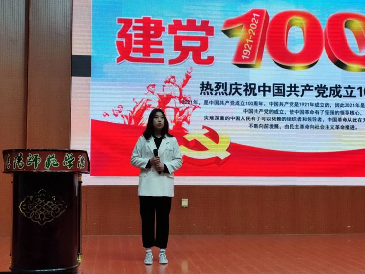 宣讲比赛中,党史重点突出“英雄”主题,用好英雄事迹和英雄精神这一“教科书”。参赛人员李诗吟、王哲精神饱满的向观众讲述焦裕禄、孔繁森、钟南山等英雄的光辉事迹。张晨阳和古丽孜完.依明进行了有关“四史”的朗诵,极具感染力,学子们感同身受,激情澎湃。新中国史以“复兴”为主题,演绎中华民族从一穷二白走上实现伟大复兴壮阔道路的伟大历程。参赛人员车莹莹、周晓悦在演讲中引用“少年智则国智,少年富则国富,少年强则国强”的名句,强调时代少年应当担起民族复兴大任,争做时代新人。