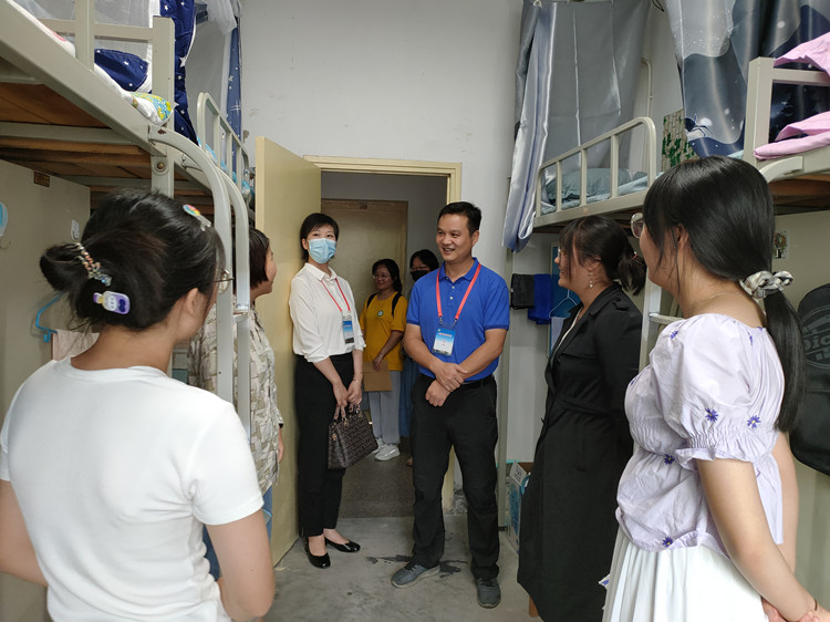 9月27日下午,物电日本无码 党委书记刘百超、党委副书记张丽及全体辅导员前往新生宿舍,看望并且慰问2021级新生。