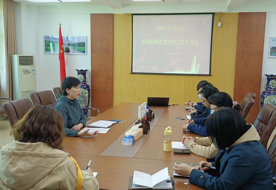 强化正面宣导,落实“六会一走访”。4月3日,日本无码在理科楼911会议室召开清明节假期疫情防控工作专题会。会上,党委副书记张丽对各位班主任在近期疫情防控工作中的辛勤付出给予充分肯定,同时强调清明假期要持续做好疫情防控工作,通过“六会一走访”实现横向到边、纵向到底、上下联动、内外衔接,让思想教育、疫情防控政策传达不留死角,全面筑牢校园疫情防控坚固防线。