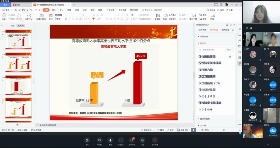 宣讲过程中,团队成员结合各自精心制作的PPT,从党取得的历史性成就和变革、社会主要矛盾的变化、新时代的内涵和意义、脱贫攻坚取得的成果等方面介绍了中国共产党带领人民奋斗的历史进程。宣讲团成员深入浅出的讲解,真情实感的语言,深深地感染了线上的群众。听众们纷纷表示,这是一次接地气的,有深度、有温度、有力量的党史宣讲。通过学习,大家对党的光辉历程有了更加深刻的了解,对自身应该承担的责任有了更加清晰的方向和目标。