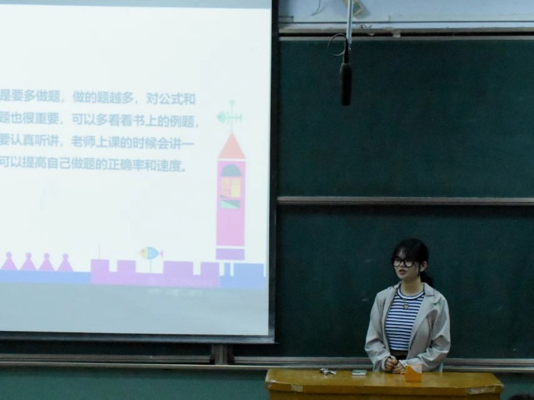 2021级物理学班曹明鑫从自身实际出发,就“大一新生目前可能遇到的困难”进行耐心的指导,指出“学生应重视学业,提高上课效率,提前做好错题的归纳总结”。
