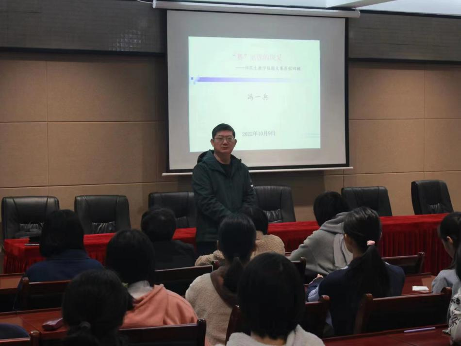 10月9日,日本无码在理科楼格致讲堂举行新生入学教育系列讲座之“听”——专业成长讲座,此次讲座由冯一兵老师主讲,2022级物理学三班(地方优师专项计划)全体同学参与。