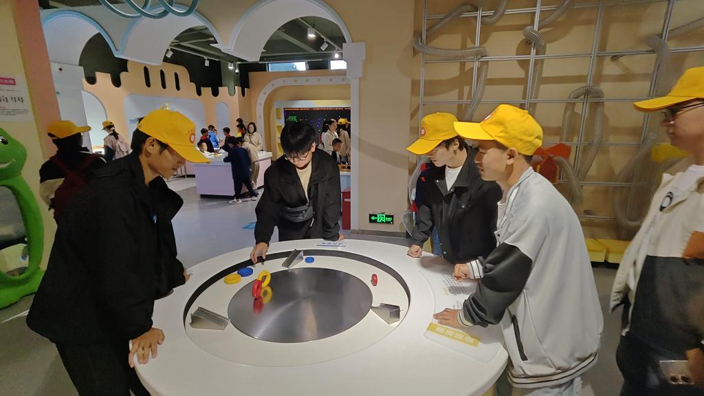 同学们认真听着解说员对科技作品的介绍,不时地与解说员互动交流。走进声光体验、电磁探秘、运动旋律、数学魅力、健康生活、消防安全等展区,看着“生活科技”“物理科技”“天文地理”“益智体验”“数字科技”等这些新奇的作品,同学们充满了好奇心。