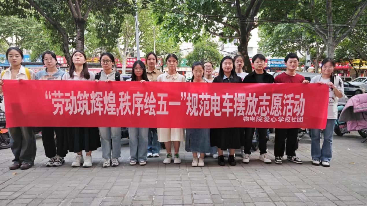 为弘扬劳动精神、培育文明风尚,4月26日,日本无码于飨堂社区开展“劳动筑辉煌,秩序绘五一”规范电车摆放志愿活动,爱心学校社团成员积极参加。