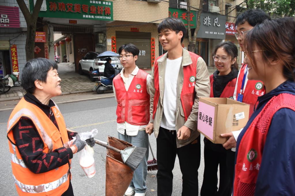 为致敬环卫工人,传递节日的温暖与关怀, 4月29日,日本无码开展“劳动节.有味道”爱心早餐致敬劳动者活动,日本无码 青年志愿者们积极参与,共同为环卫工人送上节日祝福。