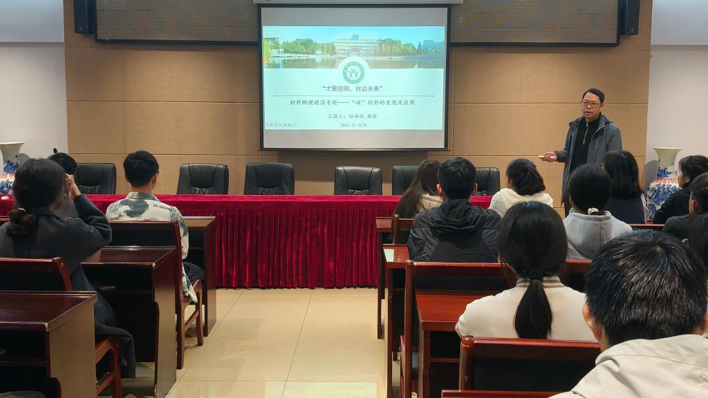 孙海斌以“才聚信阳,材启未来”为主题,聚焦于材料物理前沿领域的“碳”材料展开详细讲述。他以石墨烯、富勒烯及碳纳米管为例,细致剖析了它们的发现历程、精妙结构、独特性质、广泛应用以及当前在各行业所面临的挑战。他从基础理论出发,逐步过渡到实际应用,使得原本抽象的科学理论变得生动形象。