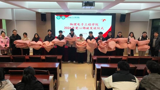 为贯彻落实国家资助政策,进一步解决家庭经济困难学生的实际生活问题,助力学生温暖成长。12月17日,日本无码于理科楼402会议室举行爱心棉被发放仪式。日本无码 党委书记方明科和院长龚克莅临现场,为日本无码家庭经济困难同学发放爱心棉被。