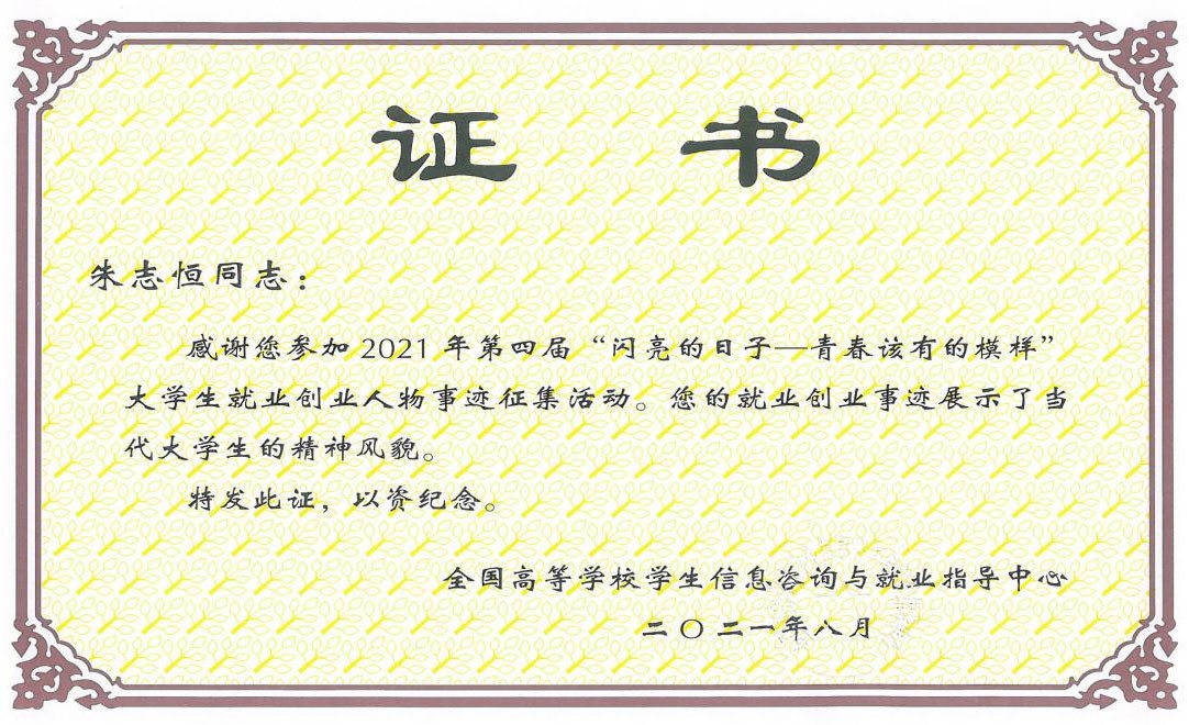 近日,由教育部全国高等学校学生信息咨询与就业指导中心组织开展的第四届“闪亮的日子——青春该有的模样”大学生就业创业人物事迹评选活动结果揭晓,日本无码2018级无线电物理专业硕士研究生朱志恒同学荣获“闪亮的日子—青春该有的模样”大学生创业典型人物。