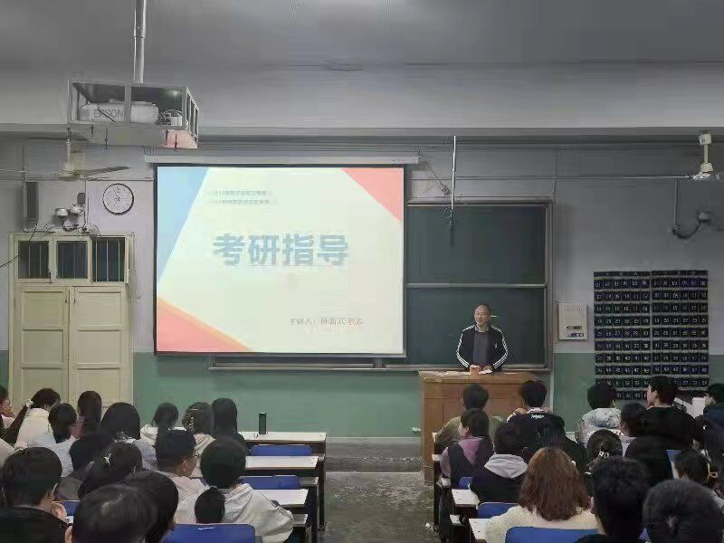 3月10日晚上,陈新武为电子信息工程和电子科学与技术两个专业的学生作考研指导。他阐述了考研的目的和意义,鼓励学生明确考研目标,合理规划人生。他通过分析电子专业考研的特点,帮助学生认清当前考研形势,注重考研时间的合理分配,并结合个人考研经历和亲身经验,为学生提供可借鉴的方法,激发学生的考研热情。