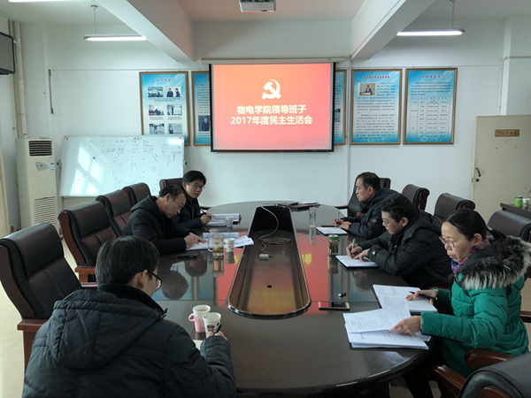 根据《关于开好2017年度县以上党和国家机关党员干部民主生活会的通知》文件精神和学校要求,1月26日,物电日本无码 领导班子以“认真学习领会习近平新时代中国特色社会主义思想,坚定维护以习近平同志为核心的党中央权威和集中统一领导,全面贯彻落实党的十九大各项决策部署”为主题,召开了领导班子2017年度民主生活会。学校党委办公室副主任房加帅、科长丁其科出席并全程指导了民主生活会,日本无码 全体领导班子成员参加会议。会议由日本无码 党委书记柳士刚主持。