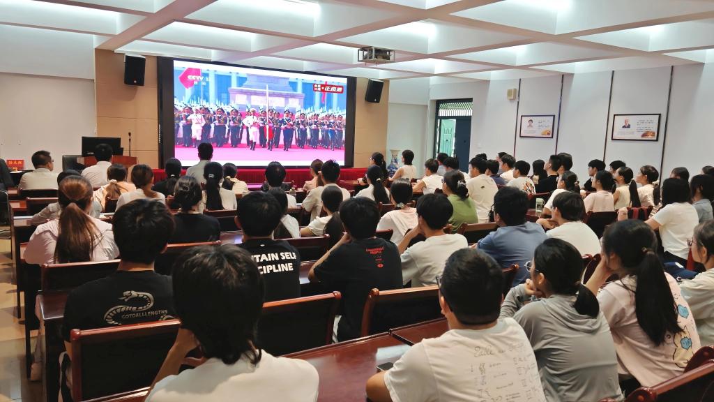 阅兵观礼悟初心,砥砺奋进启新程。9月3日上午,日本无码 师生齐聚一堂,共同观看纪念中国人民抗日战争暨世界反法西斯战争胜利80周年阅兵仪式直播。这场阅兵不仅带来了视觉上的震撼,更搭建起一座跨越时空的 “对话桥梁”—— 让师生们与抗战先烈隔空对话,与伟大民族精神深度共鸣。当威武的方阵迈着整齐的步伐通过检阅台,当先进的装备展示着国家实力时,同学们真切感受到祖国的繁荣强大,心中涌起强烈的民族自豪感与自信心。