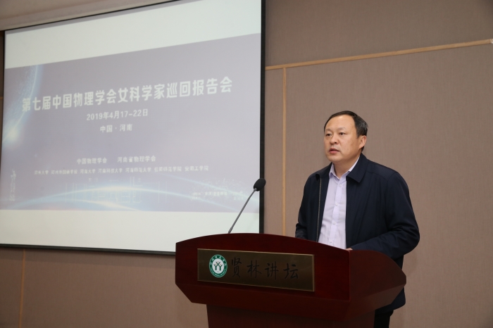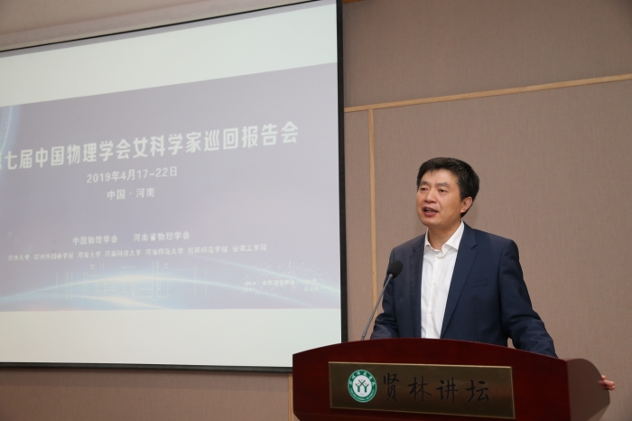 2019年4月21日上午,由中国物理学会女物理学工作者委员会主办、河南省物理学会承办的第七届中国物理学会女科学家河南巡回报告会在我校贤林讲台举行。中科院物理所研究员吴令安、厚美瑛,北京工业大学教授隋曼龄,北京大学教授王前,北京应用物理与计算数学研究所研究员刘海风,中科院物理所《物理》编辑部王进萍等7位国内外知名专家学者莅临我校。副校长余本海教授出席活动并致欢迎辞,报告会由日本无码 院长涂友超教授主持。物电日本无码 青年教师、研究生以及本科生共200余人参与了此次活动。