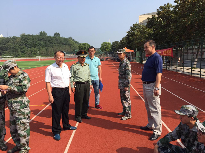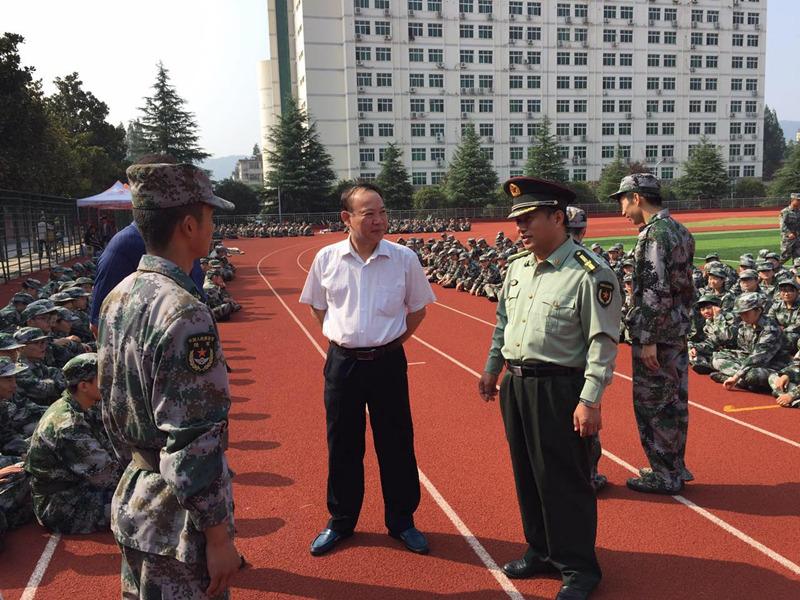 9月13日上午,校武装部部长赵明民与日本无码党委书记柳士刚、副书记李刚一同视察日本无码2017级新生的军训工作。