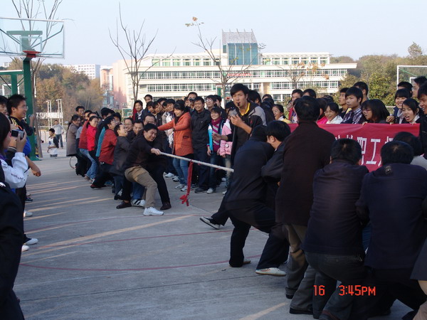 分工会组织策划了一场别具风味的趣味运动会。此次运动会分别于11月16日(周二)、11月23日(周二)例会以后在人文楼西侧篮球场和足球场举行,共有四项活动项目组成:拔河比赛、袋鼠跳跳乐、慢车比赛、跳绳比赛。