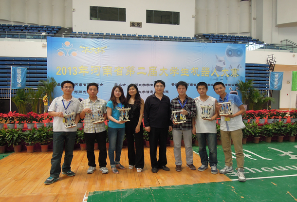 河南省大学生机器人大赛是以体育竞技为载体的高科技对抗赛事,其内容涉及机械设计、人工智能、智能控制、视觉处理、通讯、传感检测等多个领域的前沿研究和技术融合,主要考察大学生的创新能力、实践能力和团队协作精神,是培养计算机、通信、自动化科技人才,展示高科技成果,促进实用化和产业化的新途径。本次大赛按国家级比赛的标准执行,分为机器人武术擂台、微软机器人仿真、机器人游中国、机器人竞步、机器人舞蹈、机器人灭火、机人水下采矿、机器人创新设计等8类17项,共产生15个项目的冠军。