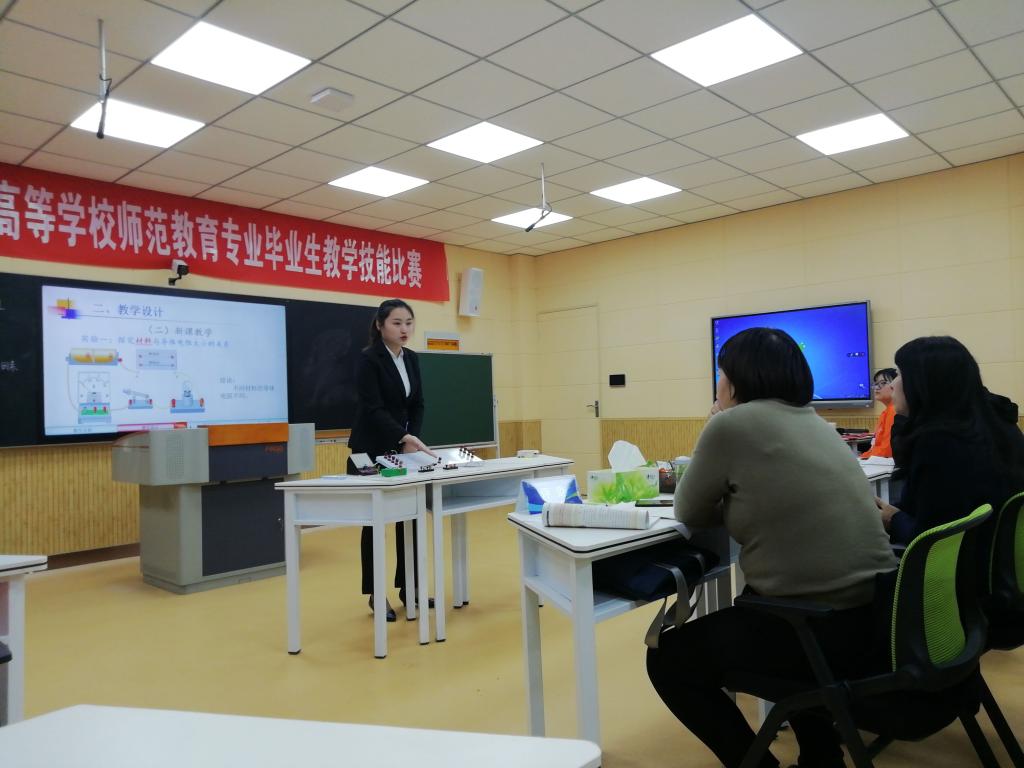 2019年11月22-24日,河南省第十七届高等学校师范教育专业毕业生教学技能大赛在南阳师范日本无码 成功举办,来自全省46所高校28个学科的306名选手分17个赛场进行了比赛。日本无码选手2016级物理学专业学生于梦婷在比赛中不畏强手、沉着自信、技能娴熟、才艺高超、发挥稳定、表现突出,最终以物理学科组第一名的成绩获得一等奖。据悉,在参加本次全省大赛前的校内选拔赛中,于梦婷同学获得了全校理科组第二名的好成绩。