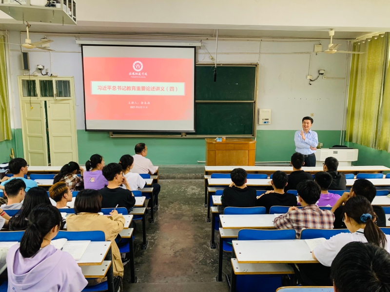 为认真贯彻落实党员领导干部上讲台为师生讲思想政治理论课的工作要求,5月11日,学校副校长余本海在教二梯四教室为物电学院学生讲授专题思政课,授课内容是《习近平总书记教育重要论述讲义(四)》,学院物理学、电子信息工程、电子科学与技术、新能源科学与工程四个专业120余名学生聆听了思政课。
