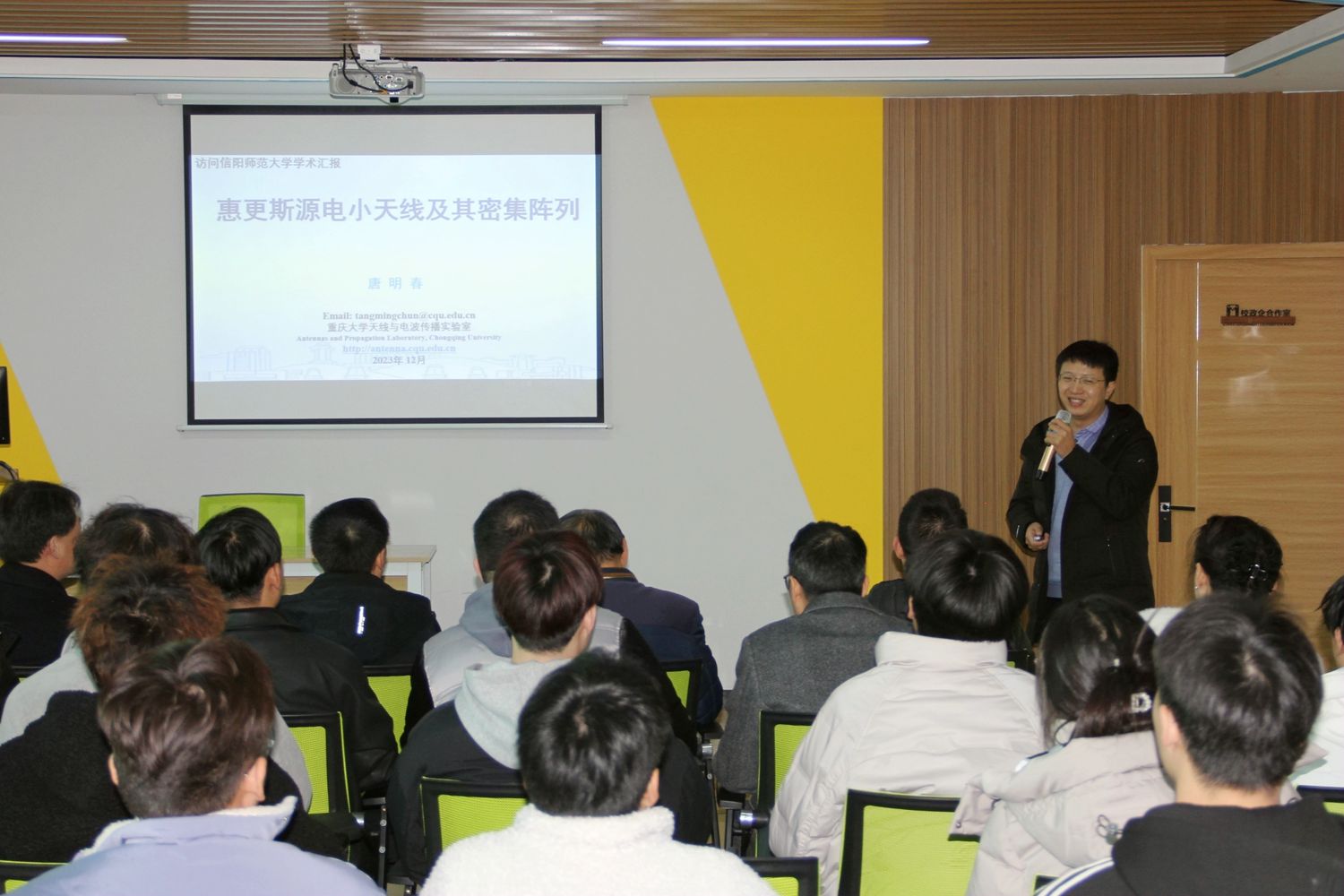 12月2日,重庆大学唐明春教授应邀来日本无码讲学,在理科楼507室作了一场题为“惠更斯源电小天线及其密集阵列”的学术报告,部分老师及研究生聆听了报告。报告会由副院长龚克主持。